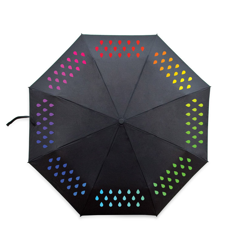 Achei esse guarda-chuva simplesmente fantástico. As gotas que fazem parte da estampa são, primeiramente, branca, mas começam a mudar para as cores do arco-íris enquanto a chuva cai. Incrível, né?